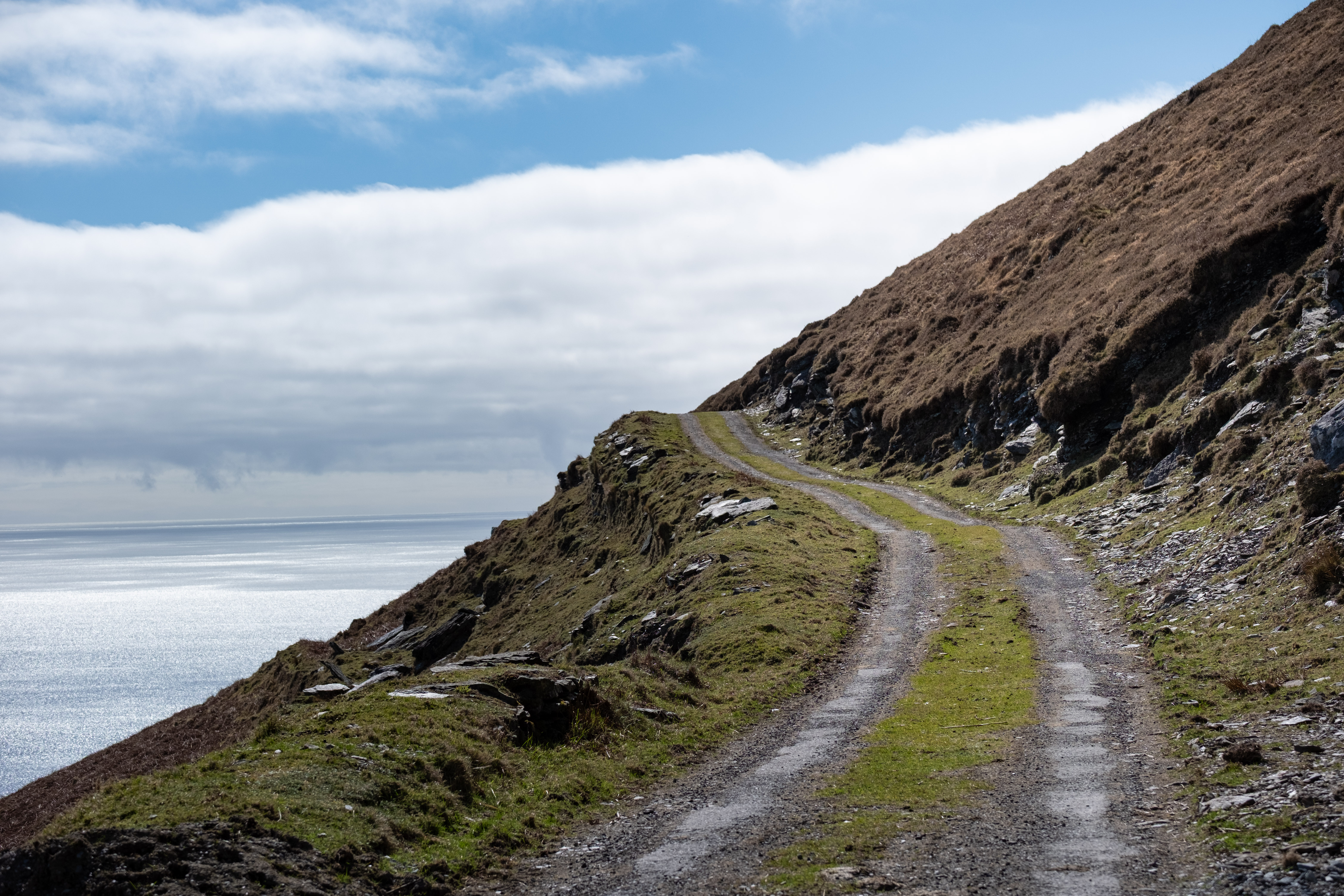 Dursey has a road, houses and cars. But on every day I walked its length, the only voices were the sheep, the wind and the sea. The only road is quiet. The same cars, left behind, sit where they were on my last visit, near the cable car. One with its hood rusted open like a yawn, another parked neatly, as if its owner might return any minute.