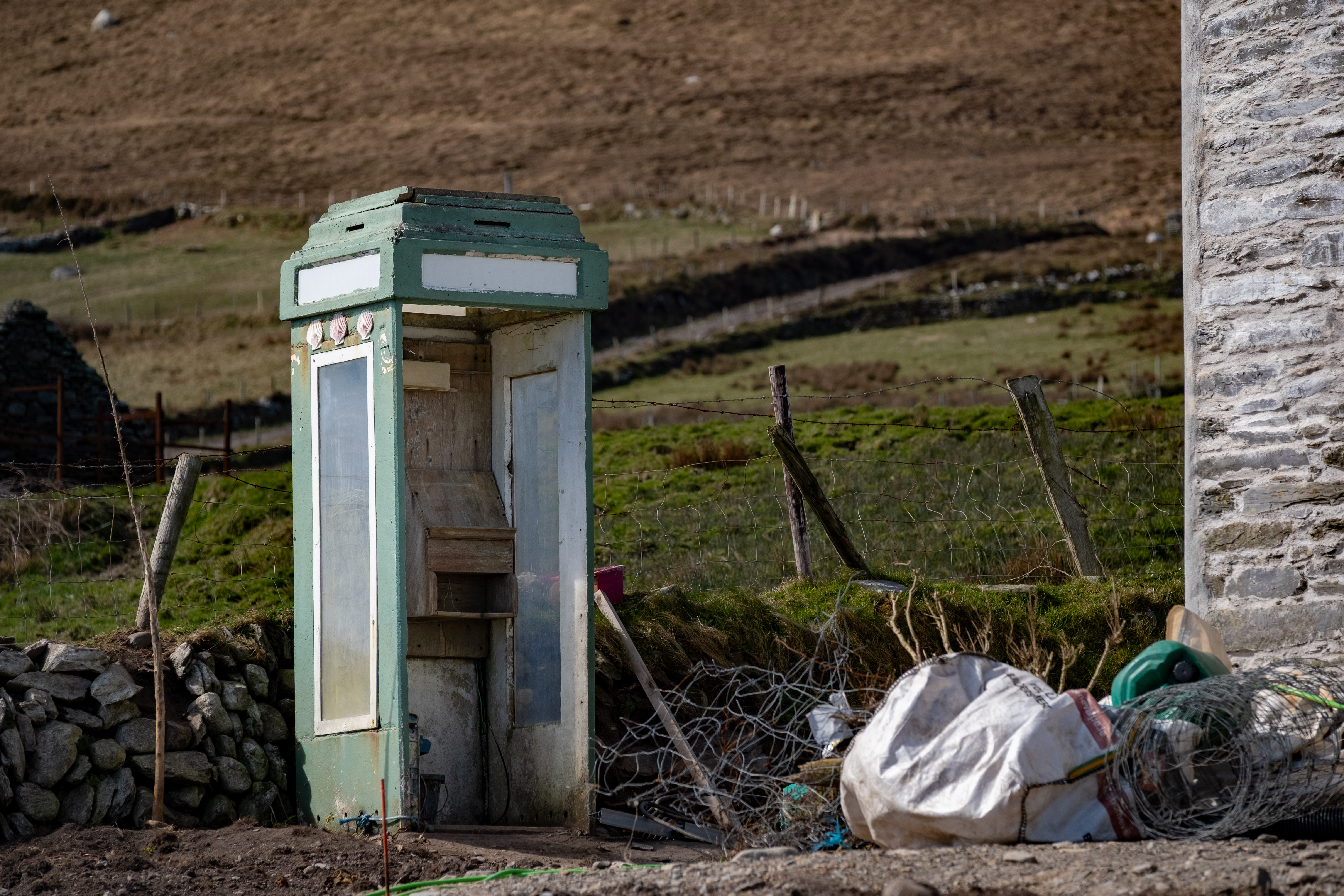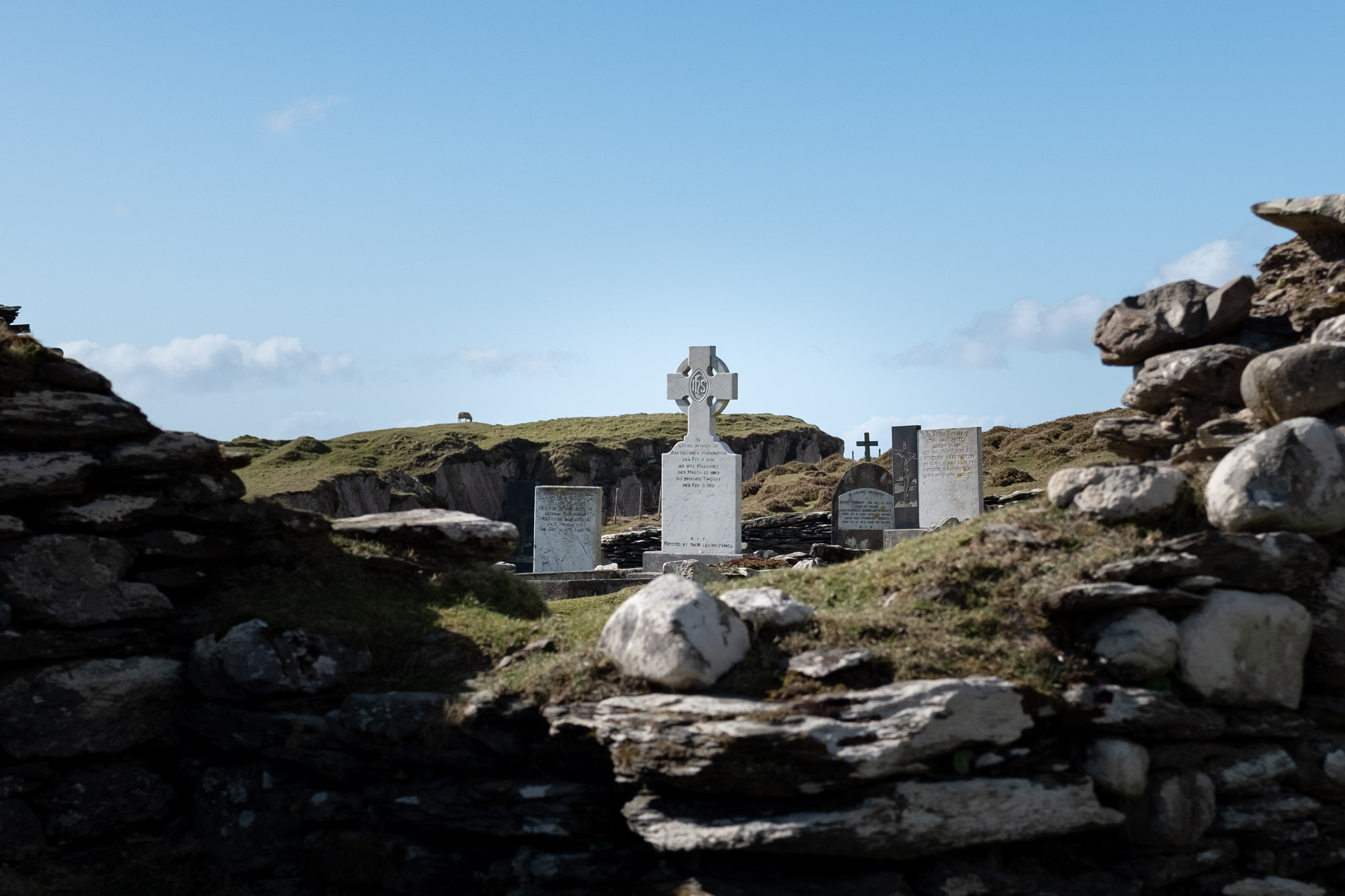 Three villages stand on the island: Ballynacallagh, Kilmichael, and Tilickafinna. The houses tell the same story. Some slump into the earth, roofs caved in, while others wear fresh paint and trimmed hedges, waiting for their owners that I could not find.